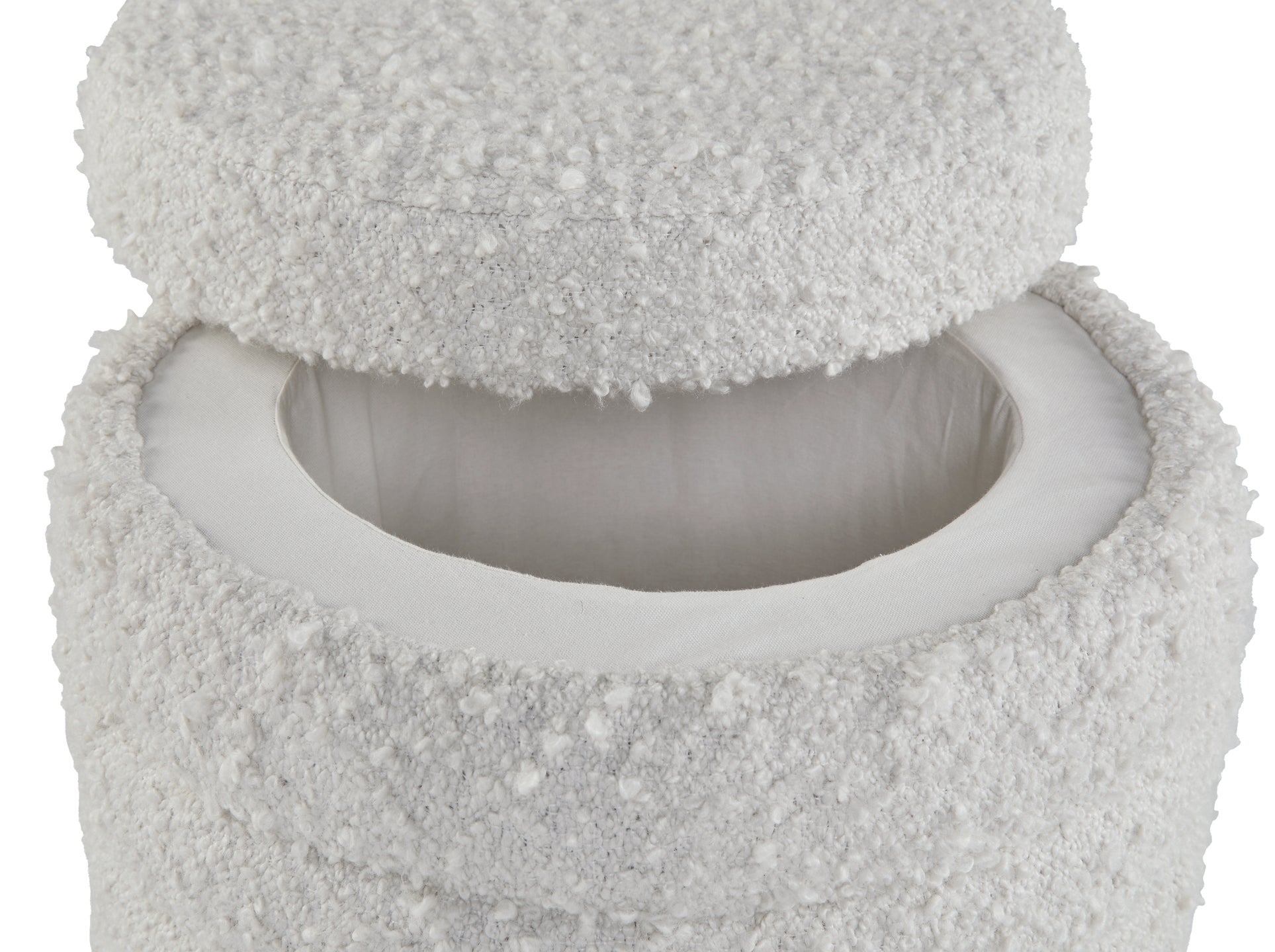 | Details | Boucle polyester upholstery, Removable top for storage | |