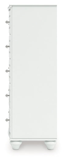Fit for a princess. This chest of drawers’ crisp matte white finish pairs with charming elements like bun feet, crystal knobs and ornate beading—the perfect crowning touches for your girly girl. This spacious five-drawer piece is sure to make your little one feel like royalty.