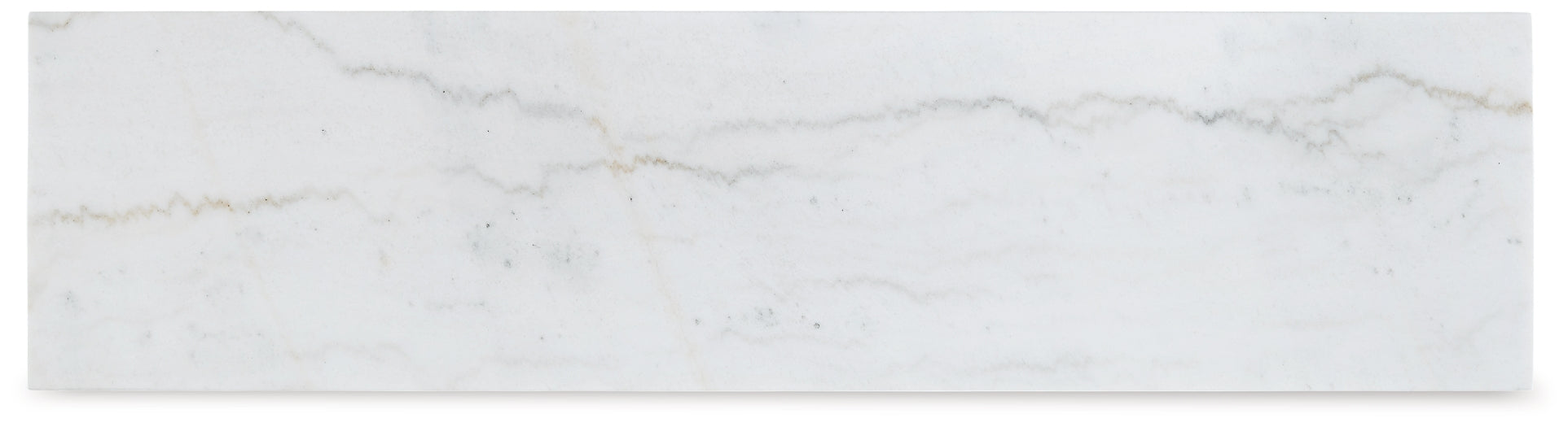 This sofa table is simple in design but big on style. Finished with a trend-right grayish brown wood tone, its bold, blocky profile and natural marble top are timeless, classic choices. This table is ideal for pairing with an ottoman to pull extra seating into the room, or for remaining clean and sleek on its own.