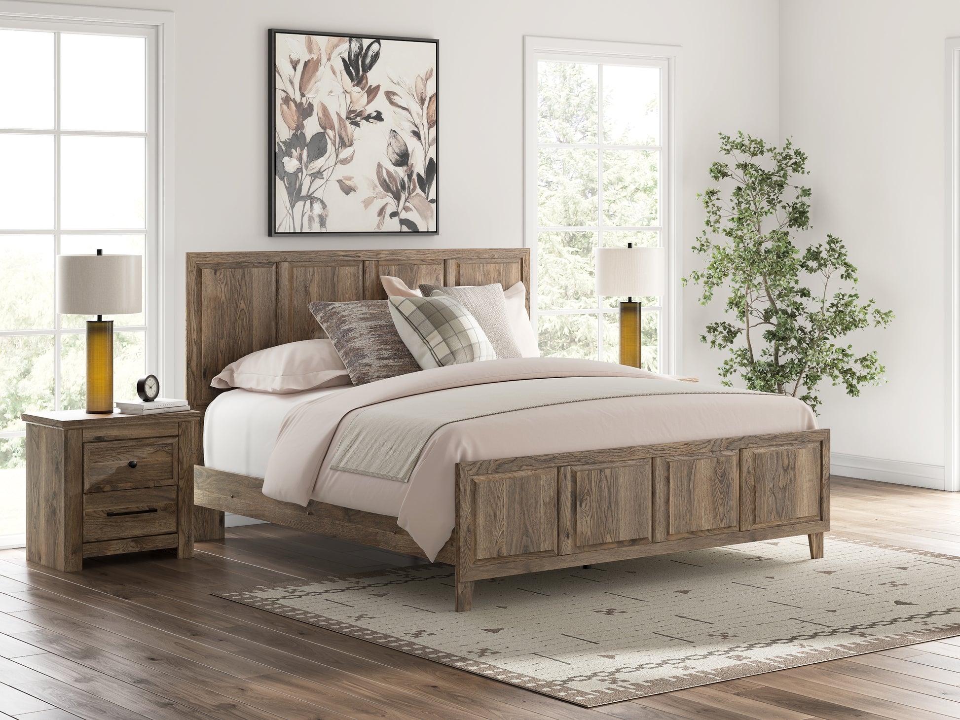 Rusticott Queen Panel Bed with Mirrored Dresser